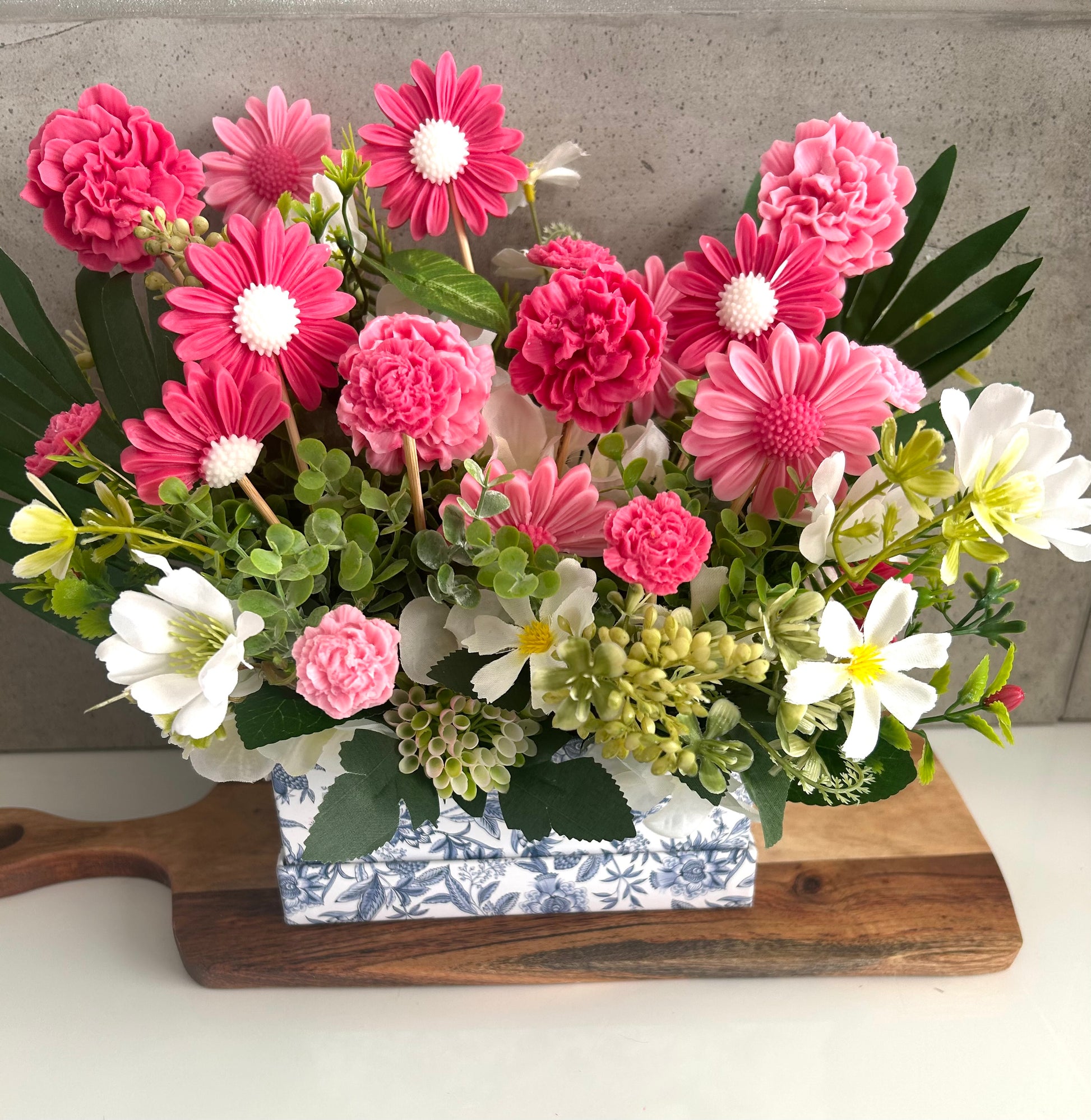 Uplift your mood with our Flower Bouquet wax melt, delivering a floral aroma that's sure to brighten your day (and your room)! Simply melt and let the fresh scents of a beautiful flower bouquet fill your home. No watering required.